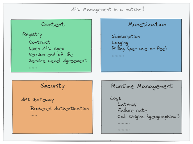 Wanneer het aantal API’s in een organisatie groeit en deze meer en meer gebruikt worden, ontkomt de organisatie er niet aan het beheer van de API’s formeel in te richten. Dit met als doel, dat ze correct worden geconfigureerd (zodat wordt voldaan aan de eisen voor performance en beschikbaarheid), gedeployed, geversioneerd en er inzicht is in het runtime gebruik. Daarnaast is het ook gewenst dat een ontwikkelaar geen API realiseert die eigenlijk al beschikbaar is. Om de organisatie hier mee te ondersteunen, kan een API-management tool worden aangeschaft. De keuze is groot^.